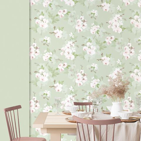 - Пятый сет выполнен в флористическом 3D-стиле и представляет собой шикарные ветви орхидей. За счет изображения высокой четкости, определенного нанесения текстуры на полотна обоев, на стене создается объемный эффект.