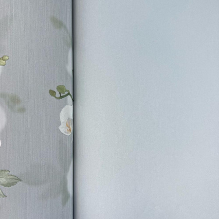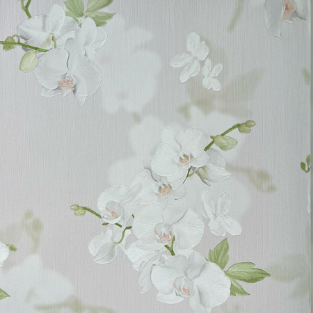 - Пятый сет выполнен в флористическом 3D-стиле и представляет собой шикарные ветви орхидей. За счет изображения высокой четкости, определенного нанесения текстуры на полотна обоев, на стене создается объемный эффект.